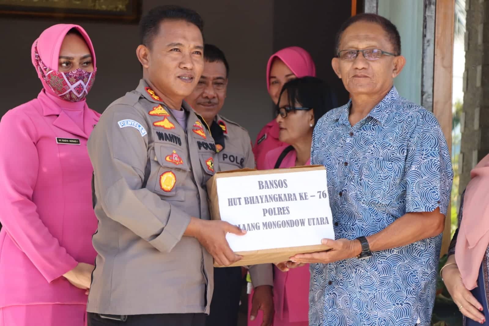 POJOKberita.id,BOLMUT__ Polres Bolaang Mongondow Utara (Bolmut) Dalam Rangka menyambut Hari Bhayangkara ke 76, tanggal 1 Juli, sejumlah kegiatan yang dilakukan Polres Bolmut salah satunya dengan melaksanakan Anjangsana ke Purnawirawan Polri dan Warakawuri, Kamis (23/6/2022) Serentak diseluru indonesia.