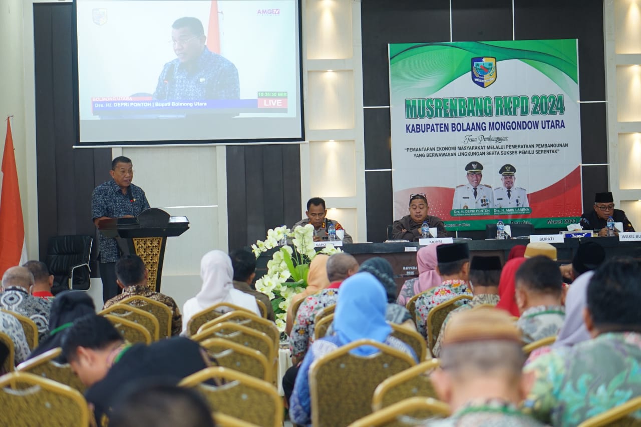 POJOKberita.id,Bolmong Utara__Bupati Bolaang Mongondow Utara Drs. Hi. Depri Pontoh Menghadiri Musrenbang RKPD 2024 Kabupaten Bolaang Mongondow Utara yang bertempat di Aula Kantor Bapelitbang Kabupaten Bolmong Utara, Kamis 16/03/2023.