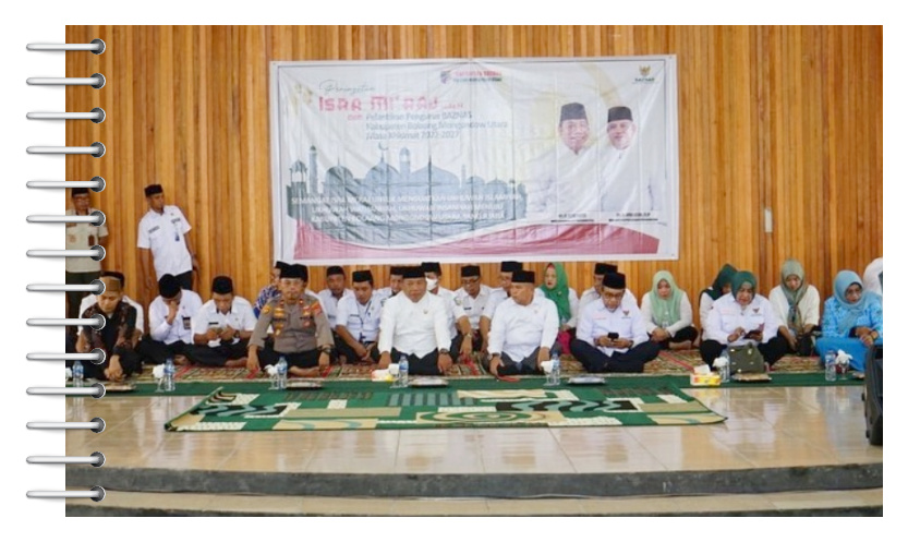 Pada peringatan isra mi’raj kali ini,dirangkaikan dengan pelantikan pengurus Badan Amil Zakat Nasional (BAZNAS) Kabupaten Bolaang Mongondow Utara masa khidmat, 2023-2027.
