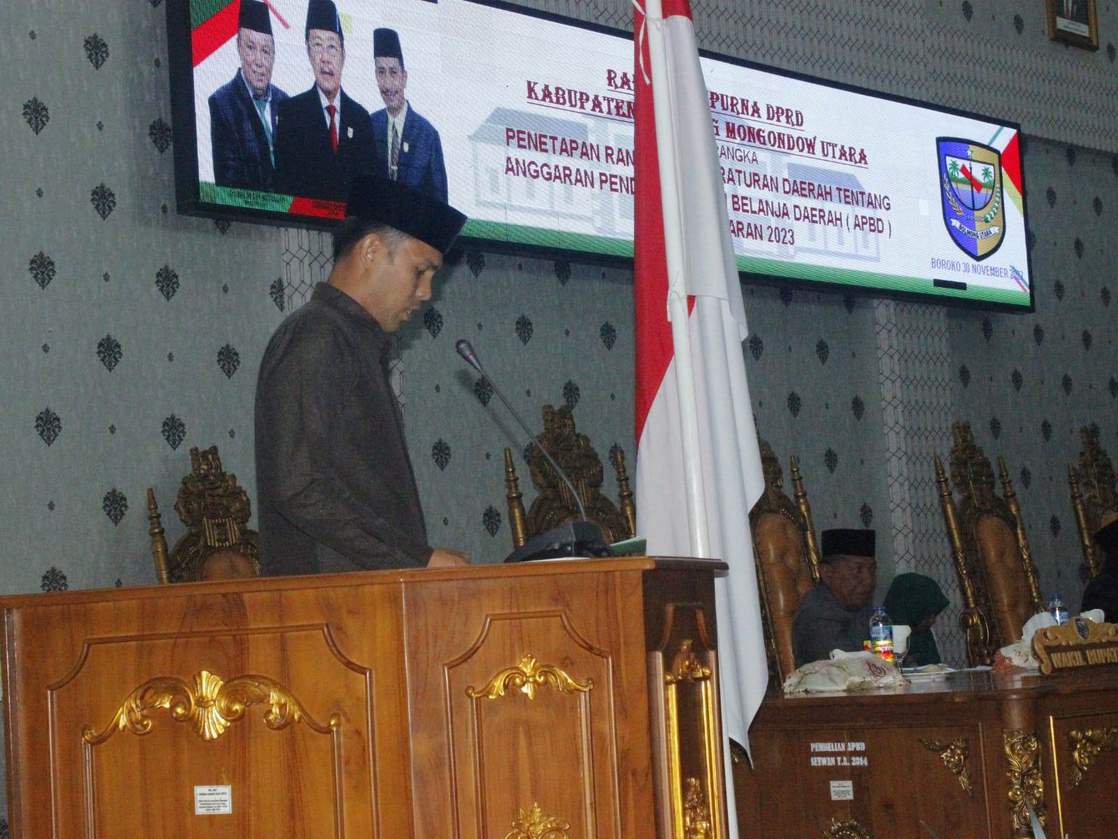 POJOKberita.ID,BOLMUT__Dewan Perwakilan Rakyat Daerah (DPRD) Kabupaten Bolaang Monggondow Utara (Bolmut) Menggelar Rapat Paripurna dengan agenda membahas Penetapan Rancangan Peraturan Daerah Tentang Anggaran Pendapatan dan Belanja Daerah (APBD) T.A 2023, (30/11/2022).