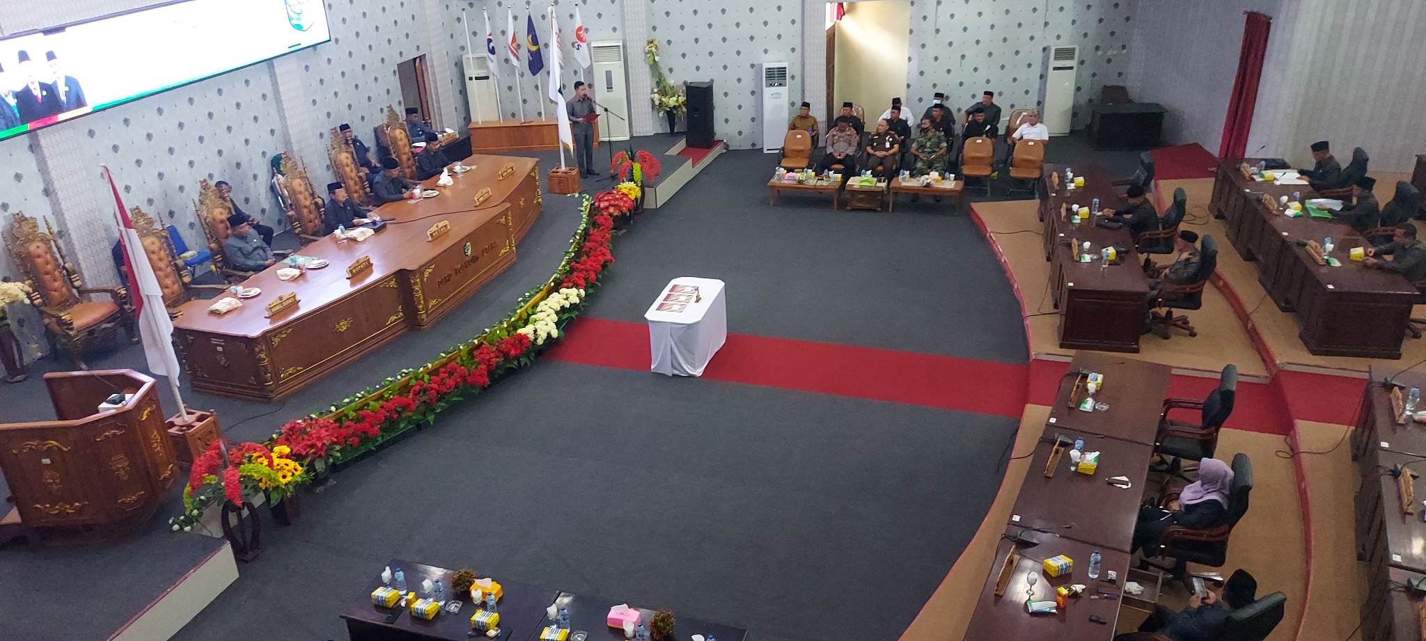 Rapat paripurna dipimpin oleh Ketua DPRD Franky Chendra disertai Wakil Ketua DPRD Drs.Salim Bin Abdulah ,Saiful Ambarak Spd.i dan segenap Anggota DPRD Kabupaten Bolaang Mongondow Utara.