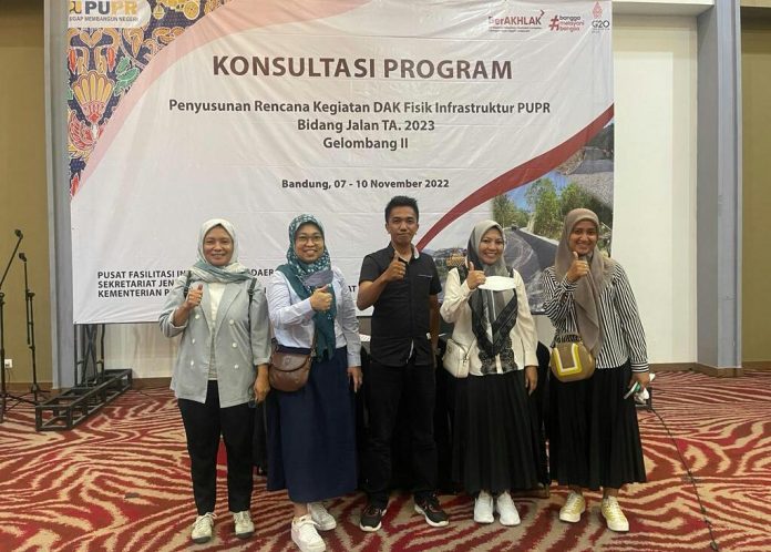 POJOKberita.id, BOLMUT__ Dinas Pekerjaan Umum dan Penataan Ruang (PUPR) kabupaten Bolmut, menghadiri kegiatan konsultasi program penyusunan rancangan kegiatan DAK dari Rekonsolidasi Program Dana Alokasi Khusus Bidang Jalan dan Irigasi untuk Finalisasi Penyusunan Rencana Kegiatan tahun anggaran 2023, gelombang ke ll di bandung,Senin( 7/11/2022).