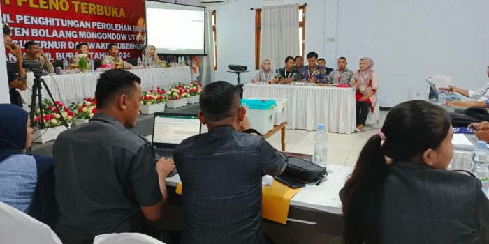 Selama proses pleno, hasil penghitungan suara dari seluruh kecamatan di Bolmut, yakni Kaidipang, Bolangitang Barat, dan Sangkub, Bolangitang Timur, Pinogaluman dan Bintauna, Data ditampilkan secara rinci mencakup hasil pemilihan untuk tingkat gubernur dan wakil gubernur, serta bupati dan wakil bupati.
