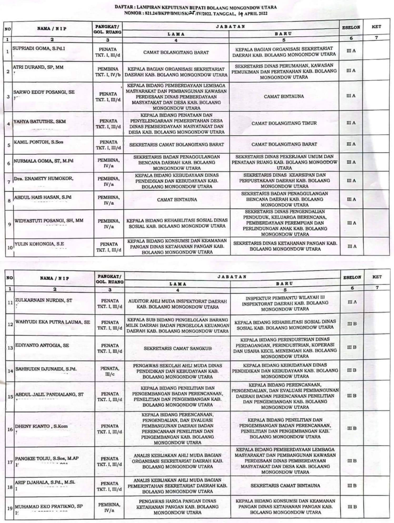 Berikut lampiran keputusan Bupati Bolmut nomor 821.24/BKPP/BMU/SK/25/IV/2022.