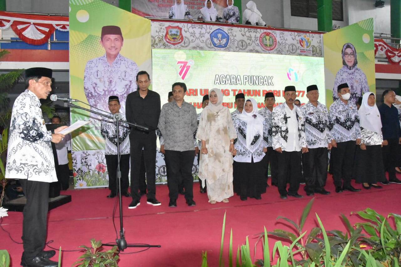 “Sengaja saya menghadirkan TNI/POLRI, camat, kepala dinas dan kepala desa serta semua undangan agar kita ingin menunjukan bahwa Kita jadi hebat, jadi baik dan jadi benar karir kita karena guru,” tegas Nelson saat memberikan sambutan pada kegiatan hari puncak HUT PGRI ke 77 dan hari guru nasional tahun 2022, di gedung olahraga david – tonny, Selasa (06/12/2022).