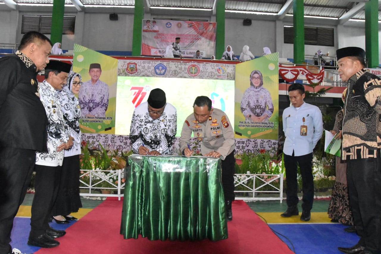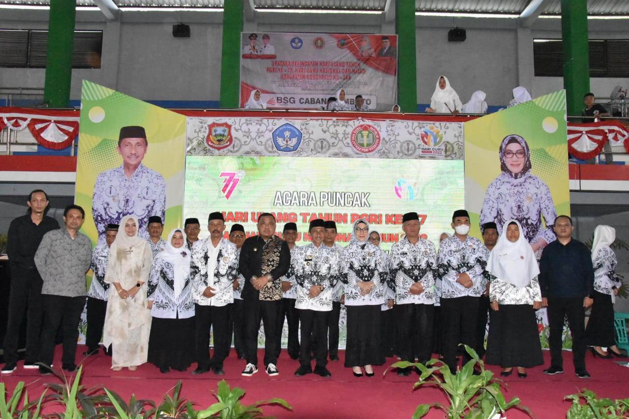 POJOKberita.Id.Kabgor __ Bupati Gorontalo Prof. Nelson Pomalingo menegaskan orang jadi hebat dan kita semua karena atas didikan Guru. Nelson katakan, dirinya menjadi Bupati menjadi wakil Bupati, menjadi TNI/ Polri menjadi kadis, camat dan sebagai menjadi hebat adalah perjuangan guru yang mendidik dengan benar.