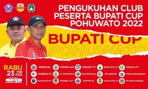 POJOKberita.id, POHUWATO, _ Acara pengukuhan Club Bupati Pohuwato Cup 2022 yang di gelar oleh panitia Asosiasi Kabupaten Persatuan Sepak Bola Seluruh Indonesia (ASKAB PSSI) Kabupaten Pohuwato di Aula Putra PUPR. Rabu, 23 February 2022.
