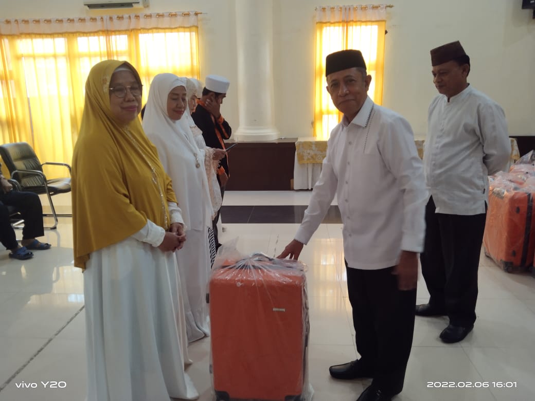 “Penyerahan Koper ini merupakan program awal untuk kita semua para tamu Allah SWT yang berkeinginan berangkat ke tanah suci nantinya, sehingganya untuk melancarkan perjalanan tersebut mari bersama kita semua melakukan pembiayaan yang kita lakukan kerjasama secara berangsur-angsur untuk pemberangkatan bulan Maret kedepannya sembari menunggu dibuka pendaftaran bang penin dan amitra syariah tersebut.”ujarnya.