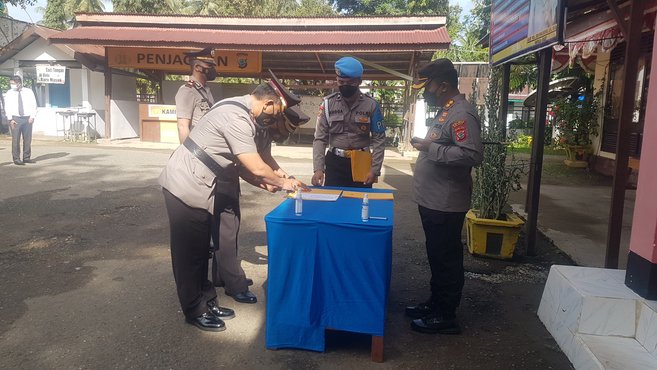 Dari pejabat lama Kompol. Keri Guswandi Utiarahman resmi diserahkan kepada pejabat baru Kompol. Samuel Kayangan,SH.Kabag Ops Kepada AKP. Hariadi Ismail,S.I.K