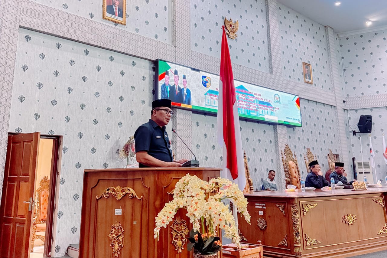 BOLMUT|POJOKberita.ID__Pelaksana Harian (Plh.) Bupati Bolaang Mongondow Utara Darwin Muksin, S.Sos, MM., menghadiri rapat Paripurna DPRD tentang Penyampaian Rancangan Perubahan Kebijakan Umum Anggaran (KUA) dan Prioritas Plafon Anggaran Sementara (PPAS) Perubahan tahun anggaran 2024 bertempat di ruang sidang DPRD Bolmut, Jumat 30/08/2024.