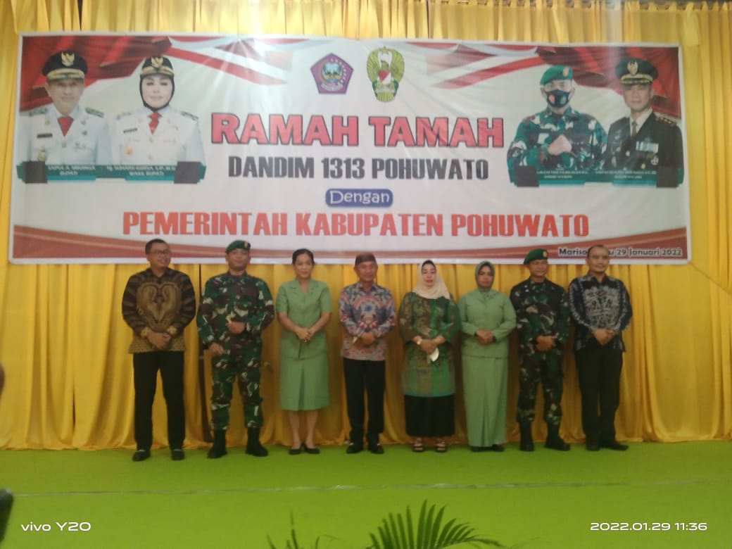 POJOKberita.id,POHUWATO _ Kegiatan ramah tamah yang di lakukan oleh Dandim lama Letkol CZI.Purbo Awin Narto S.S.MM. dan Dandim baru Letkol Inf Togu P.G Malau, S.E.M.Sc bersama Pemerintah Kabupaten Pohuwato yang di ikuti oleh Forkopimda di aula gedung Panua,Sabtu 29 Januari 2022.