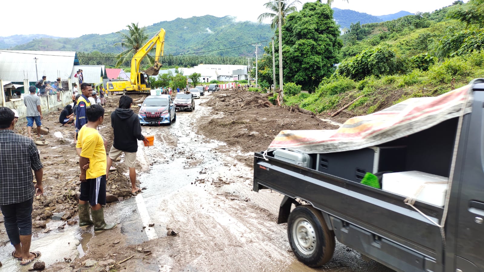 “Alhamdulillah sudah ada di lokasi kejadian satu unit Exafator untuk membantu membersihkan materila yang menutupi badan jalan,” ungkap Kapolsek Sumalata, IPTU Irwan, Kamis (26/01/2023).